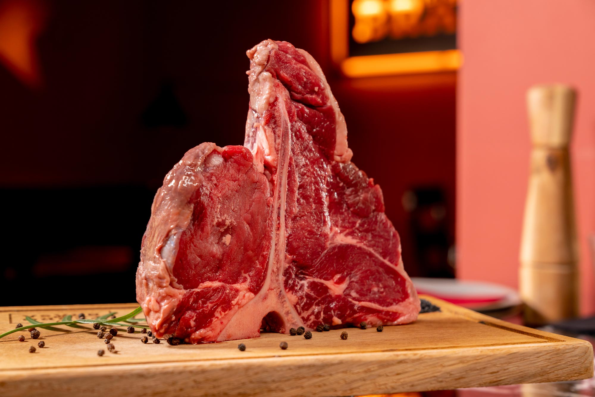 Também conhecido como bisteca, consiste num corte com osso em forma de T que separa 2 peças: a vazia, do lado maior, e o lombo, do lado menor. Proveniente de uma raça Minhota Galega, é alimentada a cereais, erva e feno.
